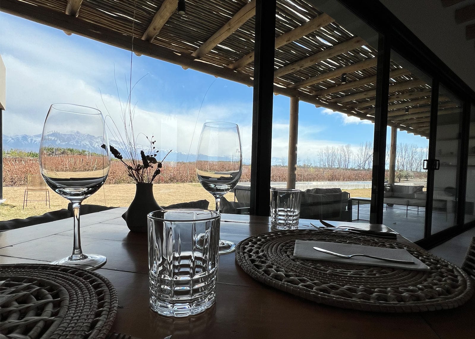 En nuestro terruño natural al aire libre en la región de los Chacayes, Tunuyán, vas a explotar los 5 sentidos de forma orgánica con el entorno. Contamos con menú para argentinos de 3 tiempos, menú de 4 y menú de 6 con 3 opciones de maridajes, beneficios para residentes y opciones sin tacc y sin carne. Nos adaptamos a la coyuntura para ofrecer una experiencia de bodega equilibrada.