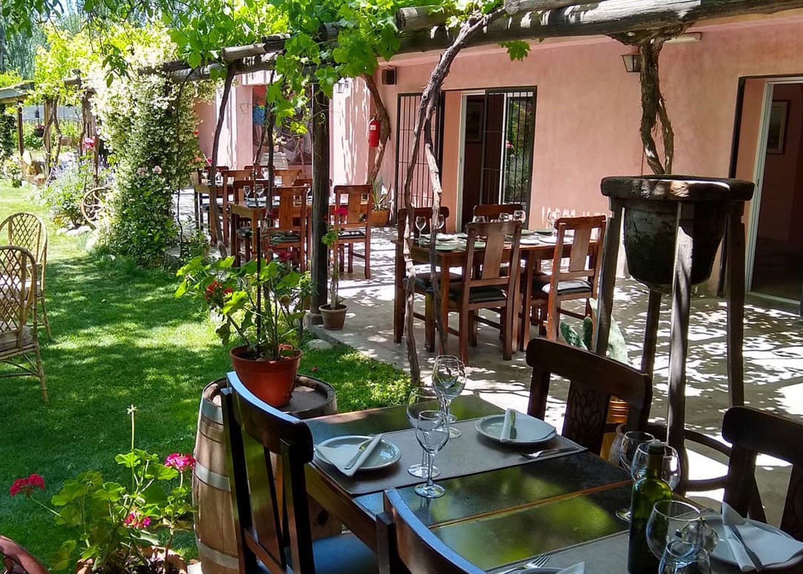 El patio es un homenaje a las raíces cuyanas, donde la sombra de las parras crea un refugio fresco y acogedor. Este espacio no solo permite disfrutar de comidas al aire libre, sino que también alberga diversas expresiones artísticas, como exposiciones y eventos culturales, que enriquecen la experiencia de los comensales. Cada detalle, desde las mesas rústicas hasta la cercanía con los viñedos, evoca la historia y las tradiciones de la región.