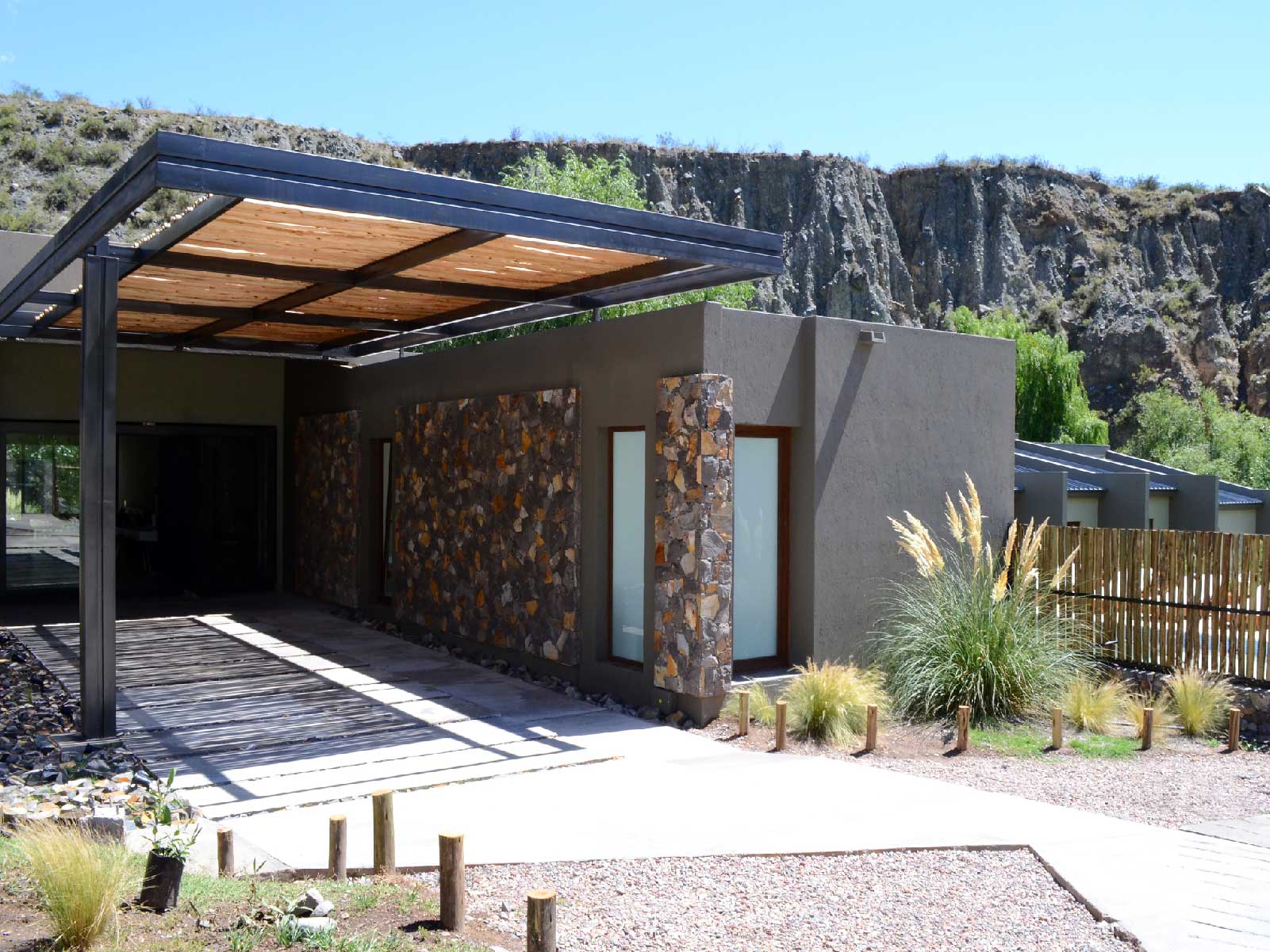 Posada del Blanco es un hotel boutique ubicado en la villa cordillerana de Potrerillos, camino a Vallecitos en Mendoza. De estilo rústico moderno, fusiona diseño, medio ambiente, montaña, el sonido del río y la vegetación autóctona de la Cordillera de los Andes. Cuenta con 15 habitaciones, Restaurante, Spa y Piscina, al margen del Río Blanco, donde sus espacios al aire libre invitan a conectar con el entorno y descansar.