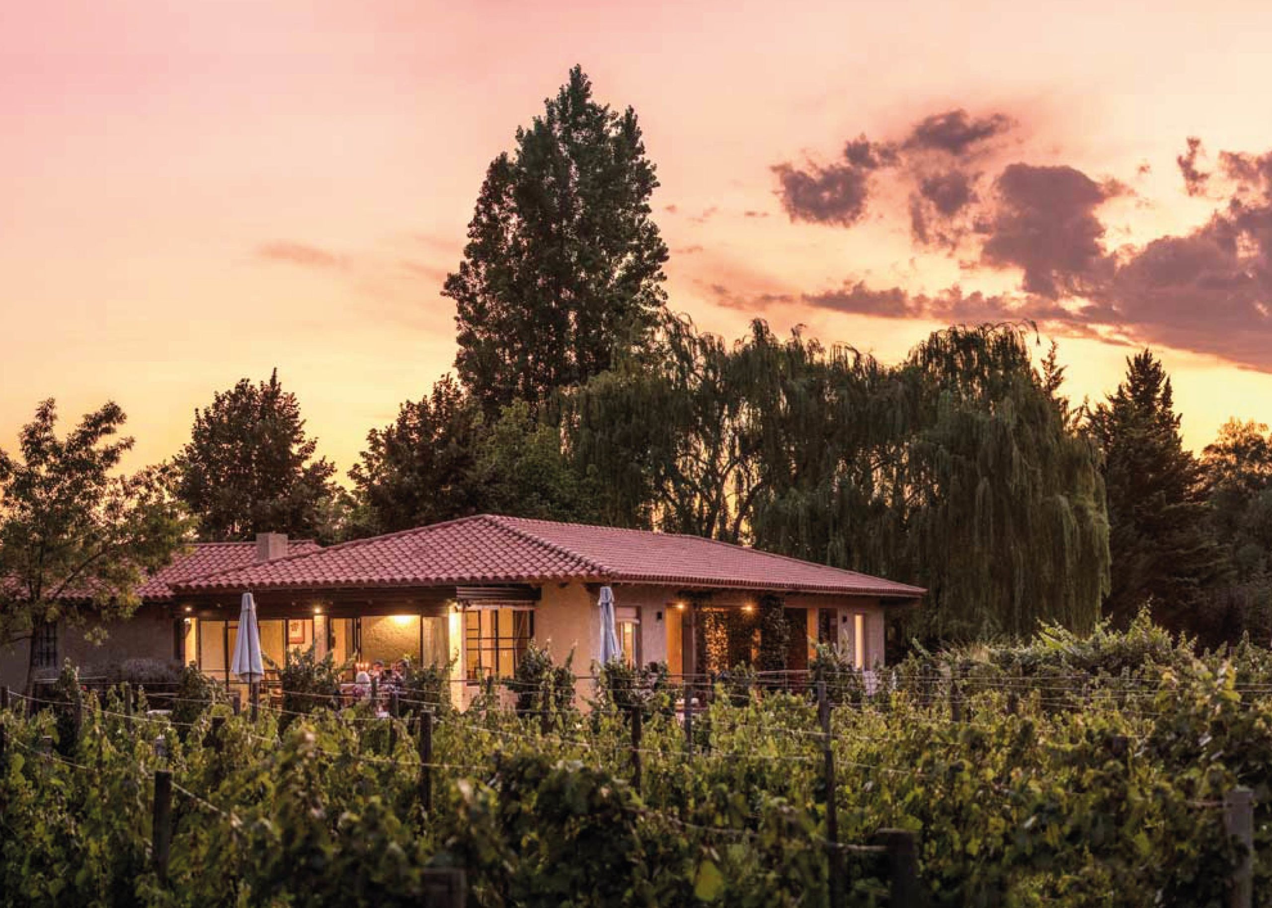 La casona principal, construida en 1890, ha sido cuidadosamente restaurada para preservar su esencia histórica, destacando elementos como techos altos, pisos de madera y amplias galerías que ofrecen vistas panorámicas a los viñedos y olivares centenarios que la rodean.
