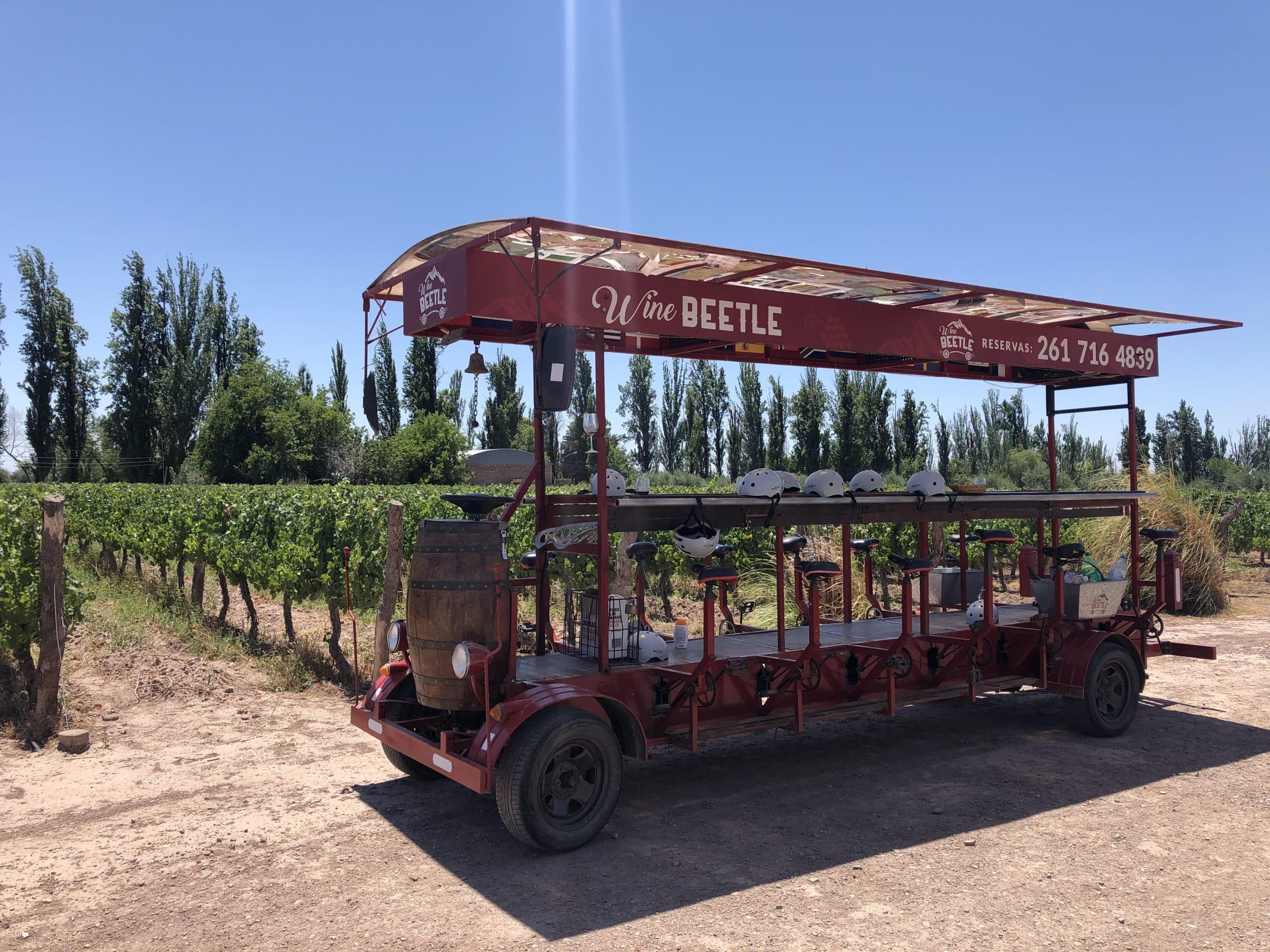 La experiencia completa comienza a las 10:00 hs en visita guiada y degustación en una Bodega con proceso productivo del vino bien tradicional. Al finalizar en este sitio, alrededor de las 10:45 hs, la bici esta lista esperando al grupo y comienza el trayecto, que es un su mayoría en bajada, hacia el siguiente punto de interés. En ese trayecto que dura aproximadamente 1 hora, se sirve un servicio a bordo, que consiste en tabla de fiambres y quesos (existe opción vegetariana y vegana), y bebidas para los pasajeros, que puede ser agua, gaseosa y/o vino, a demás de charla inforamativa sobre Mendoza. Llegamos a la degustación lúdica de aceto y aceites de oliva de autor, donde también se explica el proceso productivo y tips de consumo del mismo. Al cabo de unos 45 minutos, finaliza esta segunda visita y aguarda la bici para el trayecto hacia el punto de finalización, que es de uno 20 min a una Bodega con una visión diametralmente opuesta a la primera, es más moderna e innovadora. Se realiza una visita guiada y degustación en la misma para contrastar los diferentes métodos y tener una noción amplia de ambas posibilidades. Finalizando aproximadamente a las 14:00 hs, en la misma bodega los recepcionan para almorzar, con entrada, plato principal, bebidas y postre, redondeando el día.