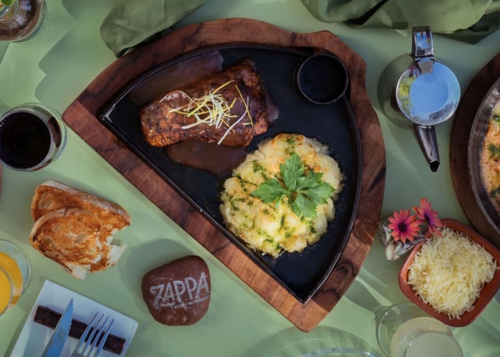 La propuesta está basada en ingredientes autóctonos, seleccionados de productores locales y de fincas propias, donde se vinifica la primera añada orgánica de distintos varietales. En Zappa, cada plato es concebido como una representación auténtica de la cocina mendocina, destacando productos icónicos como el cordero a la zappa, junto a opciones que integran vegetales frescos, trucha y otros productos de la región.