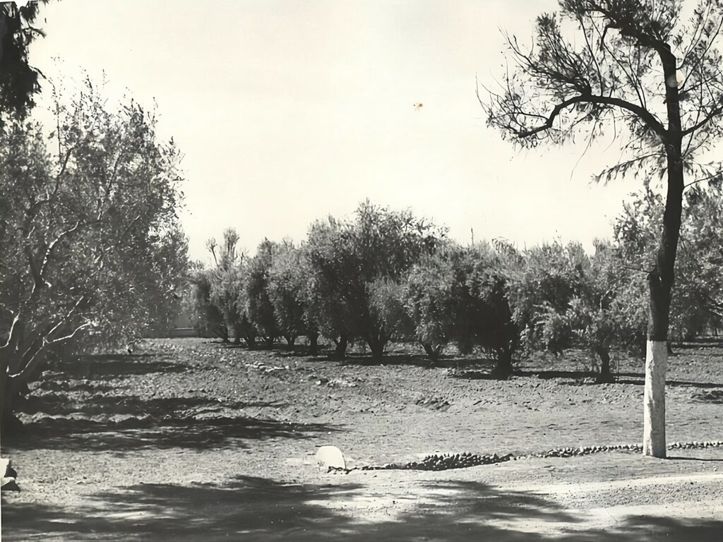 Durante décadas, este olivar histórico sirvió como campo de enseñanza, espacio de experimentación y fuente de producción para la elaboración de conservas y venta al público. A lo largo del tiempo, sus árboles se integraron al paisaje cotidiano de la ciudad, acompañando la evolución del lugar hasta su transformación en el actual Centro Cívico.